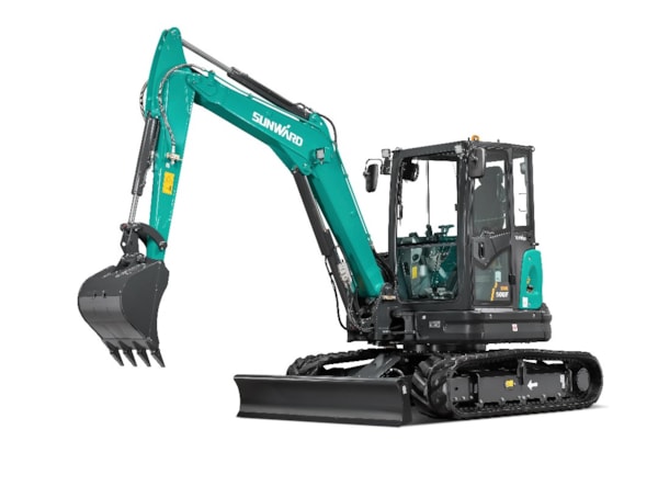 Midiexcavator Sunward are plăcerea să prezinte modelul SWE 50UF. Acest excavator de 5 tone, poziționat între modelele SWE 35UF și SWE 60UF, dispune de un design cu coadă zero (zero-tail swing), ideal pentru lucrările în spații restrânse. Este echipat cu un motor Kubota D1803-T, are o capacitate a cupei de 0,14 m³ și o greutate totală de 5,3 tone.
